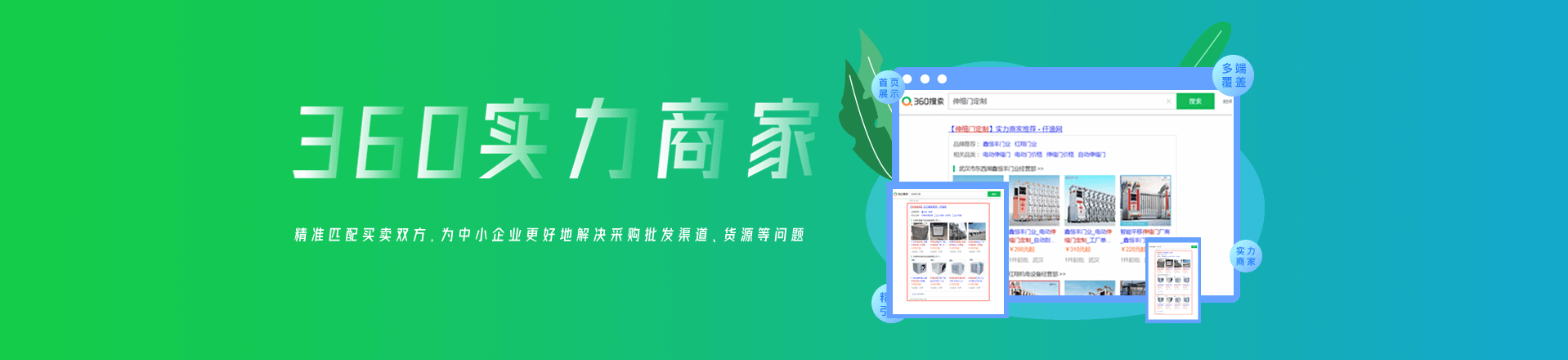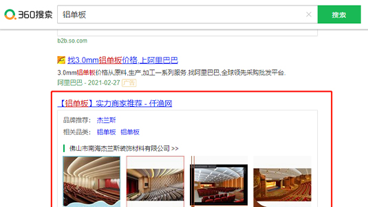 360搜索推出實力商家,實現(xiàn)搜索首頁固定展示位,精準導(dǎo)流,旨在幫助用戶直達商品信息和優(yōu)質(zhì)商家。幫助用戶一鍵直達優(yōu)質(zhì)商家,精準匹配買賣雙方,為中小企業(yè)更好地解決采購批發(fā)渠道、貨源等問題。